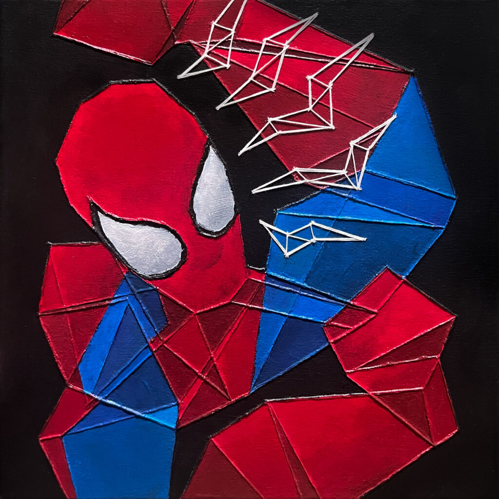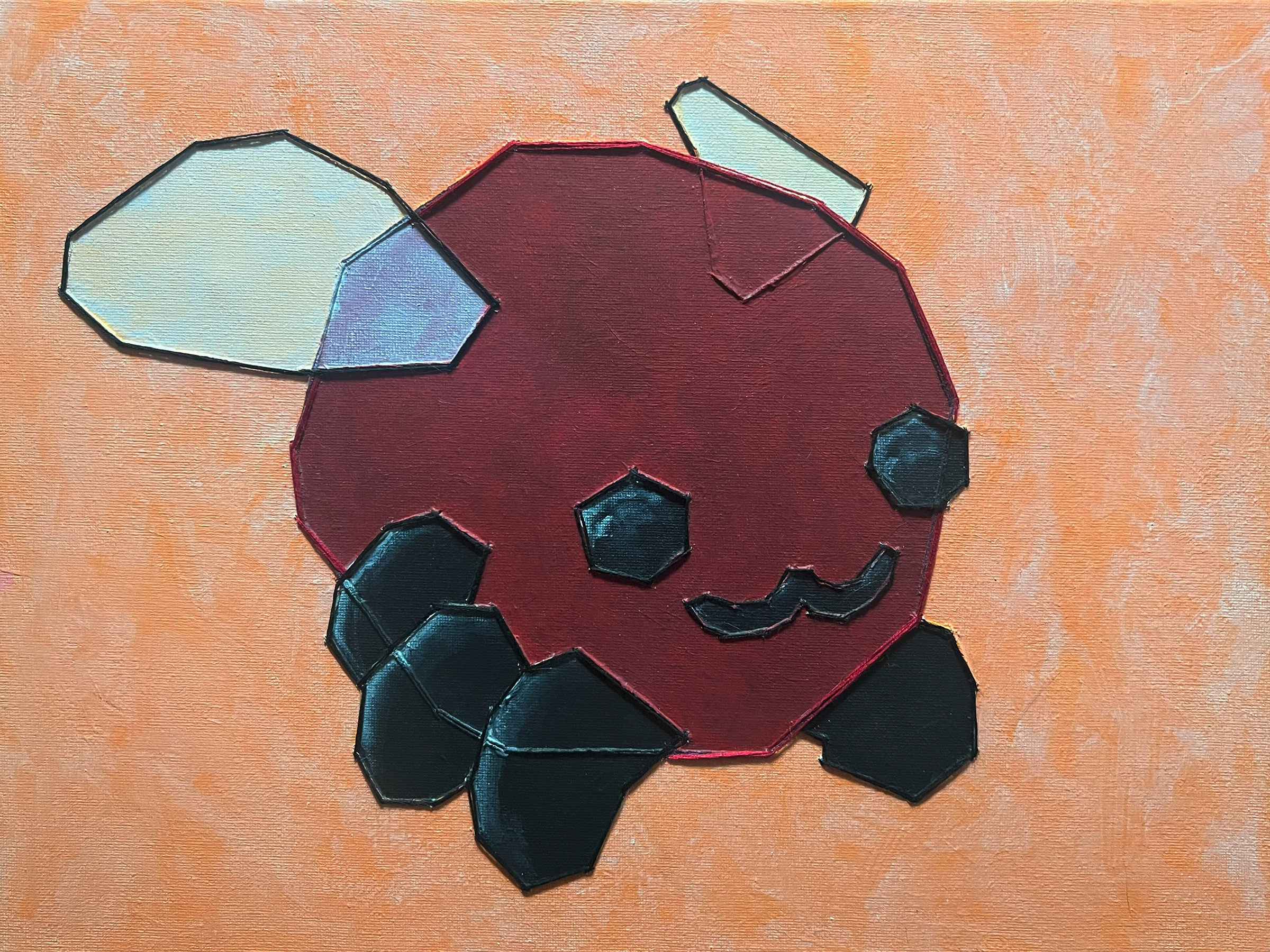 Frameworks Embroidery + Acrylic on Canvas, 2025-ongoing. A mixed media experiment: Video game “wireframe” 3D models stitched into blank canvas and painted over. “Mallard Unraveled” “Scavenger” “Escape” “Baboon Heart” “Sandvich” “Spider-Sense Tingling” Misc